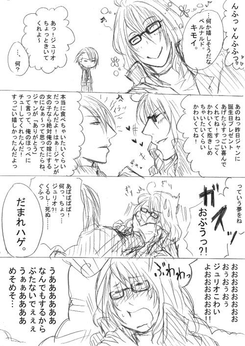 ということでnonome様のリク「ジュリオがベルナルドの奥歯ガッタガタ言わせてる漫画」でした。
