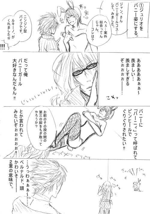 ジュリオは、「これルキーノからもらいました☆」といって、そのジャンの反応を楽しんでいる確信犯。